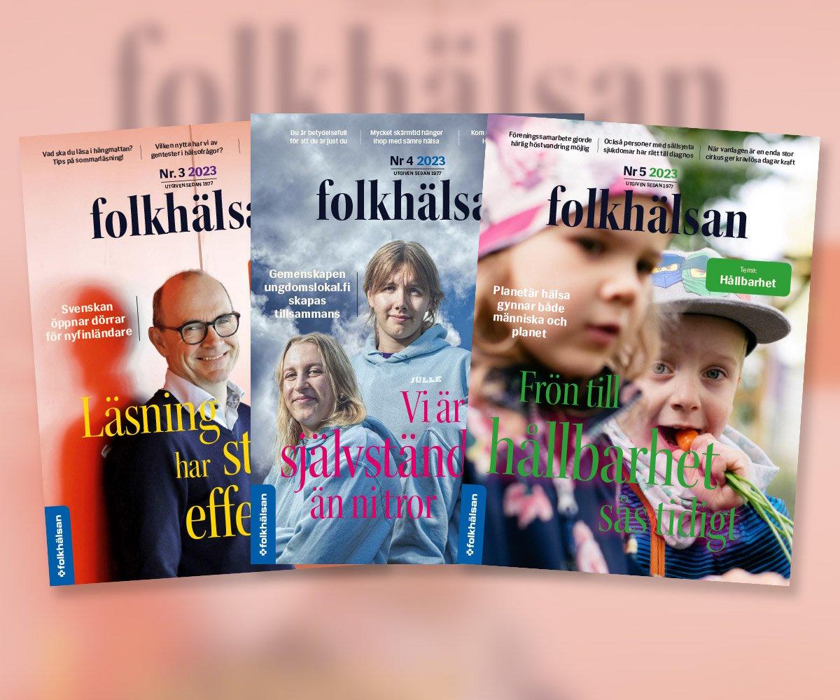 Tidningen Folkhälsan bjuder på läsning för dig som vill inspireras till bättre hälsa, påverka din näromgivning eller engagera dig frivilligt i en givande gemenskap. Tidningen tar upp aktuella hälso- och livsstilsfrågor ur ett holistiskt, individuellt och samhälleligt perspektiv. Vi skriver om relationer, familj, kost, sömn, återhämtning och fysisk aktivitet och bjuder på råd och rön som bygger på vetenskap. Tidningen tipsar också om Folkhälsans verksamheter, material, evenemang, kurser och utbildningar.