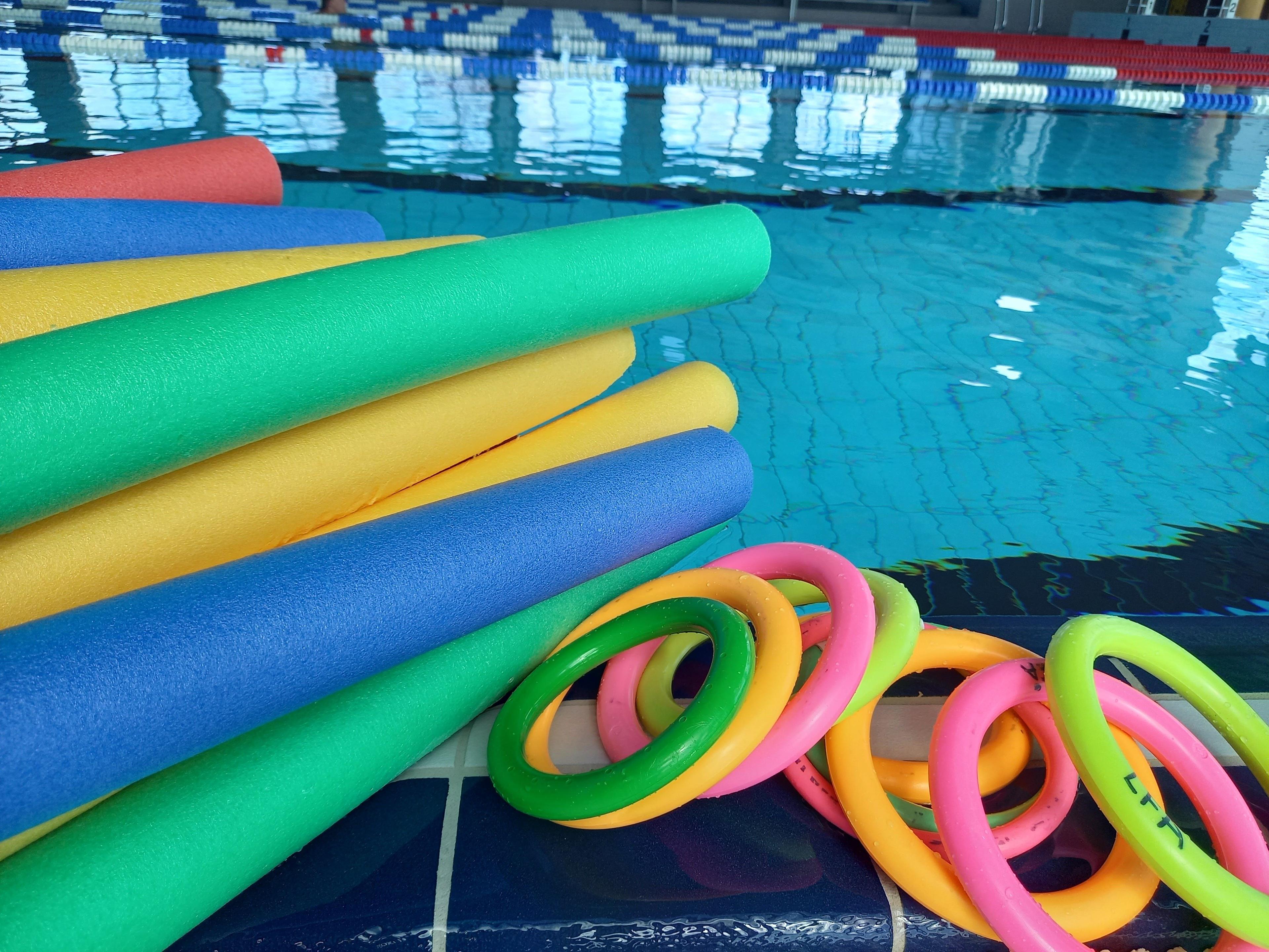 Bassängövningarna fokuserar på mångsidig användning av simhjälpmedel och på en mängd olika vattensäkerhetsövningar.