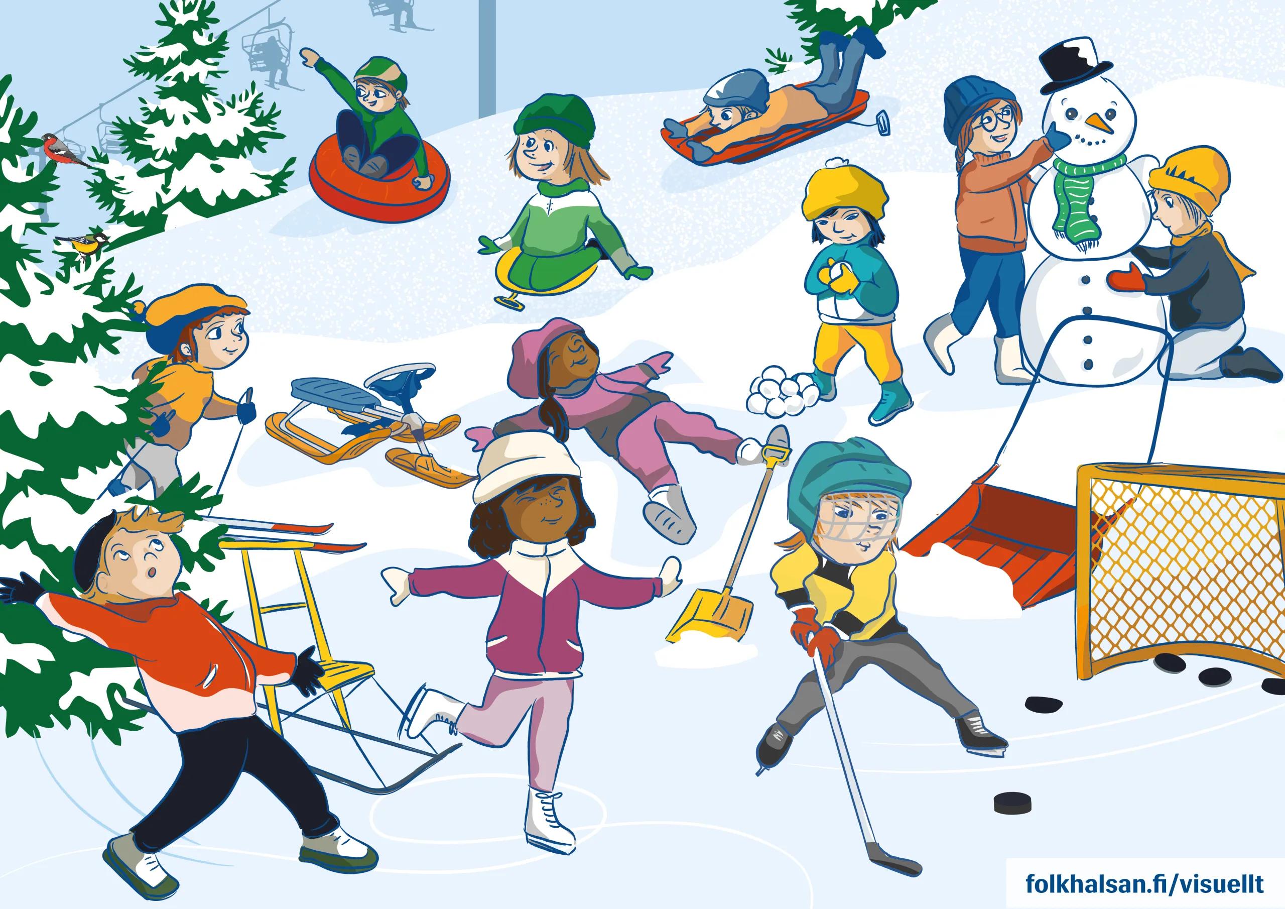 Samtala / pekprata utgående från illustrationerna. Lär dig nya ord och forska kring orden med hjälp av symboler.