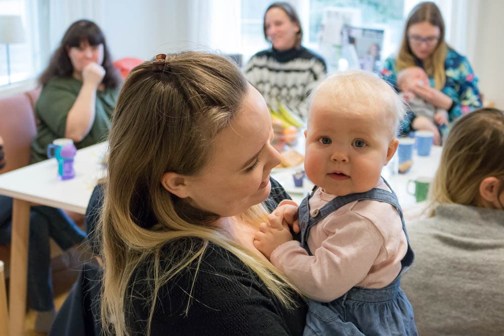 På det Öppna daghemmet Tallen träffas barn i åldern 0-6 år tillsammans med sina vårdare för att umgås, dricka kaffe, leka, sjunga och spela.