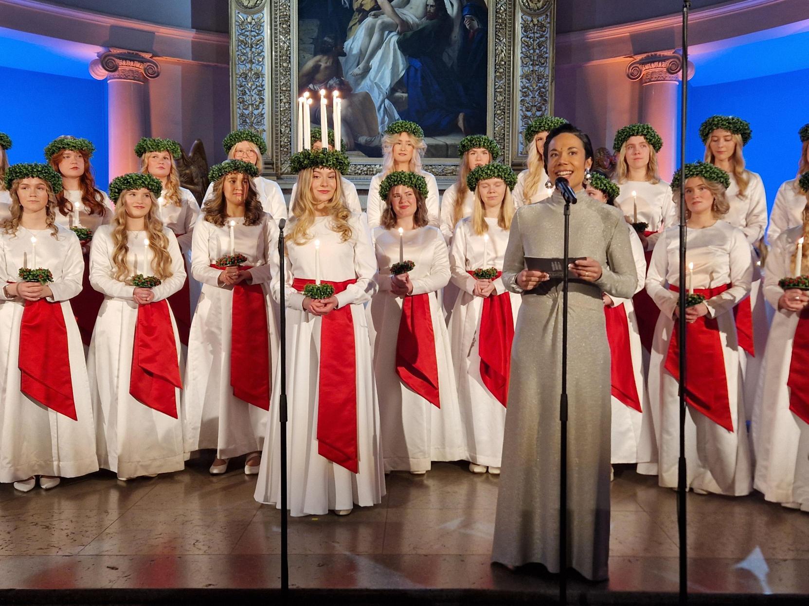 Mitt i årets mörkaste tid har publiken i en fullsatt Helsingfors domkyrka och tv-tittarna fått njuta av ljus, vacker sång och stämning då Finlands Lucia 2025 Alexandra Lindqvist kröntes av entreprenören och arbetslivsprofessorn Shadia Rask.