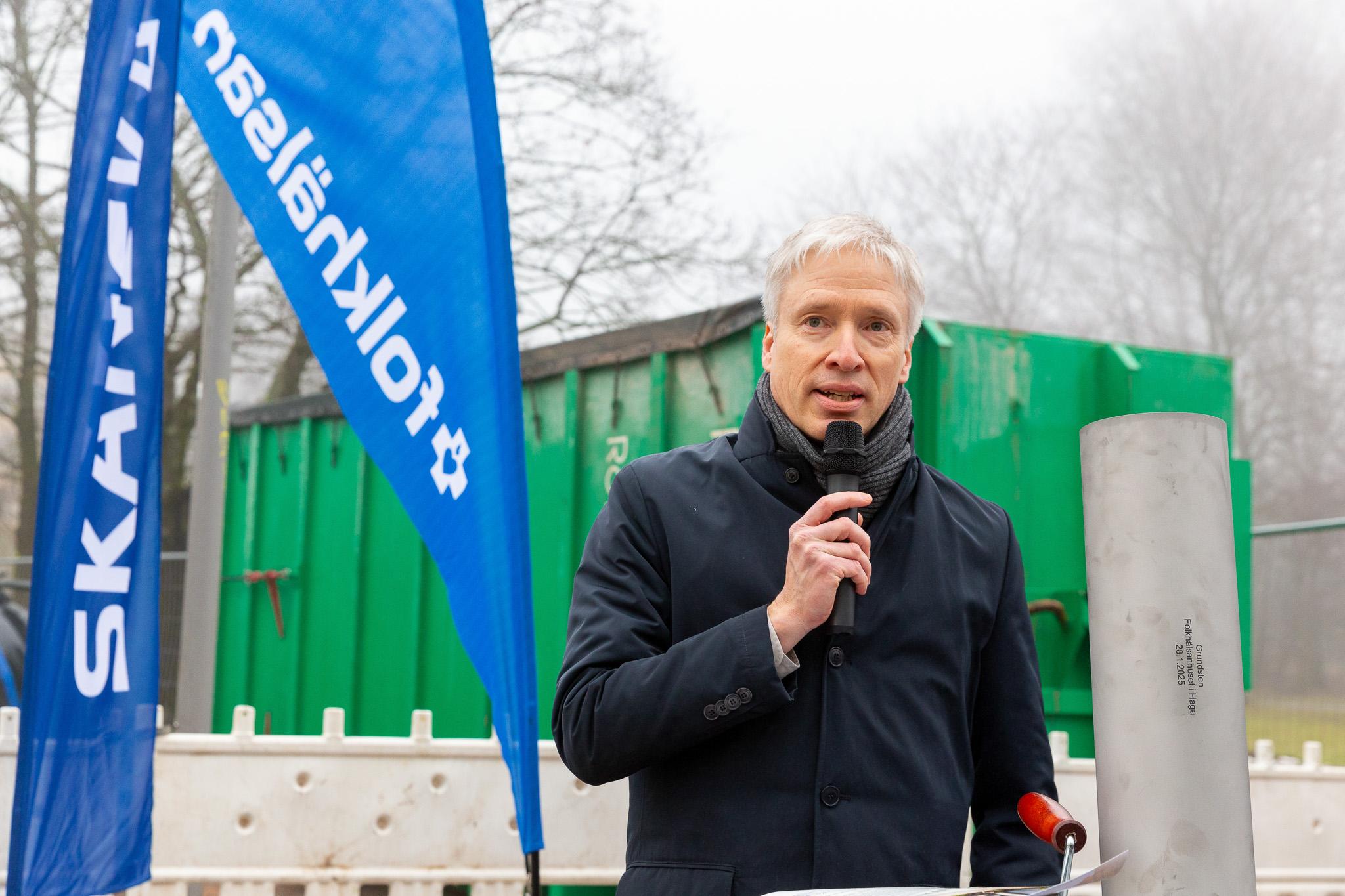 – Skanska vill vara med och bygga ett bättre samhälle och Folkhälsanhuset i Haga är en betydande del av det arbetet. Ett bygge handlar till stor del om stål och betong, men i slutändan görs arbetet av människor och för människor, sa Muurimäki.